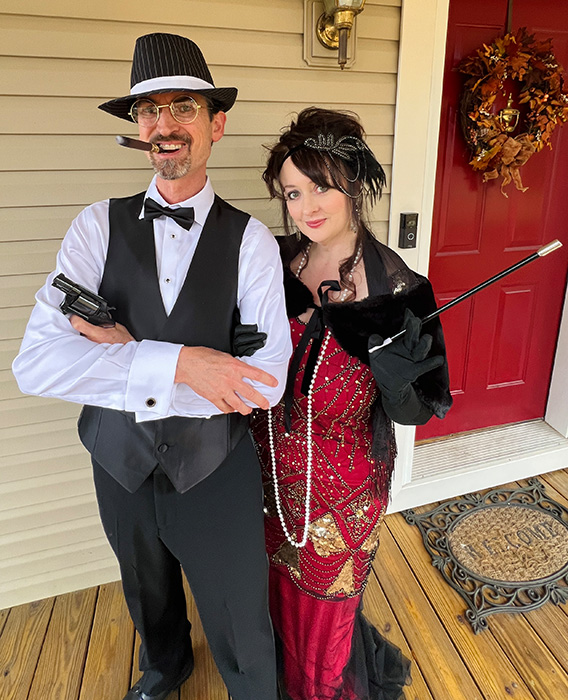 We watched a lot of Film Noir movies in 2024, so it was only natural that Noir would be our theme for Halloween of 2024. These characters are reminiscent of Five O'Clock Shadow and Ashley Archer, but here we have more elaborate costumes that provide a variation on that theme. The cigar is fake, but the pistol is real.